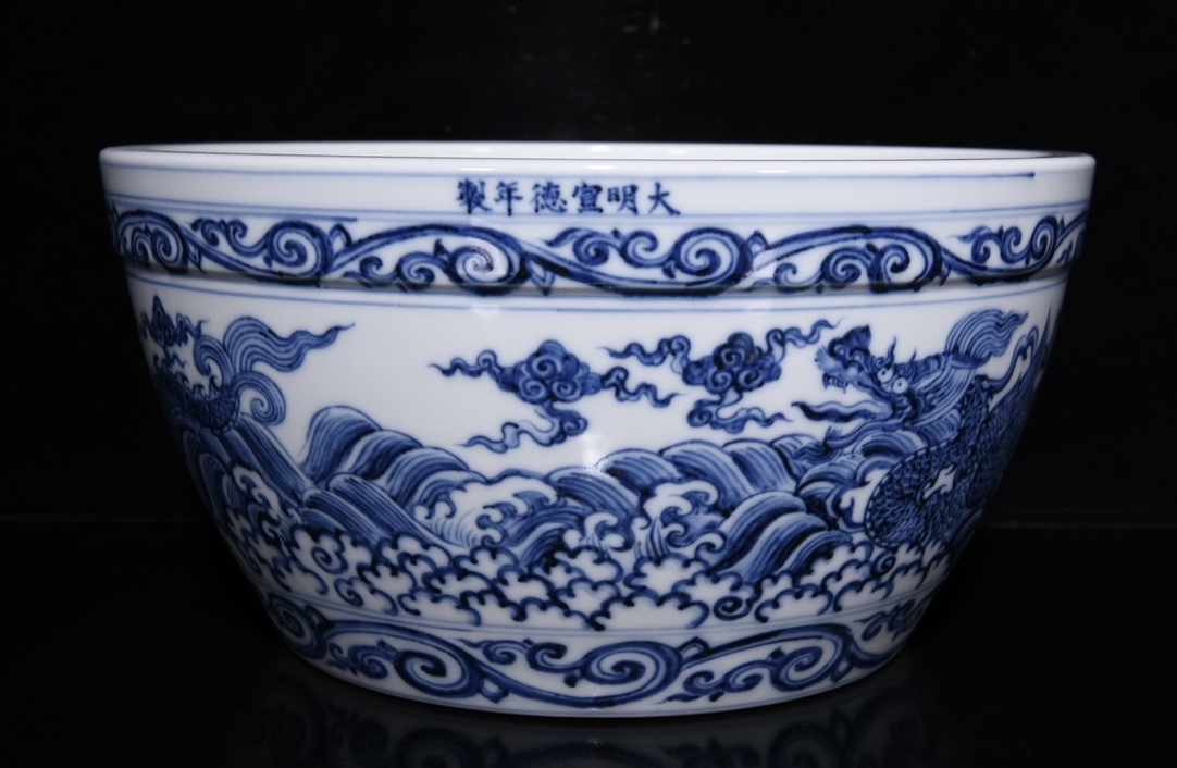 - LM114■中国古玩 唐物 明宣徳青花龍紋花鉢 時代物 極上品■