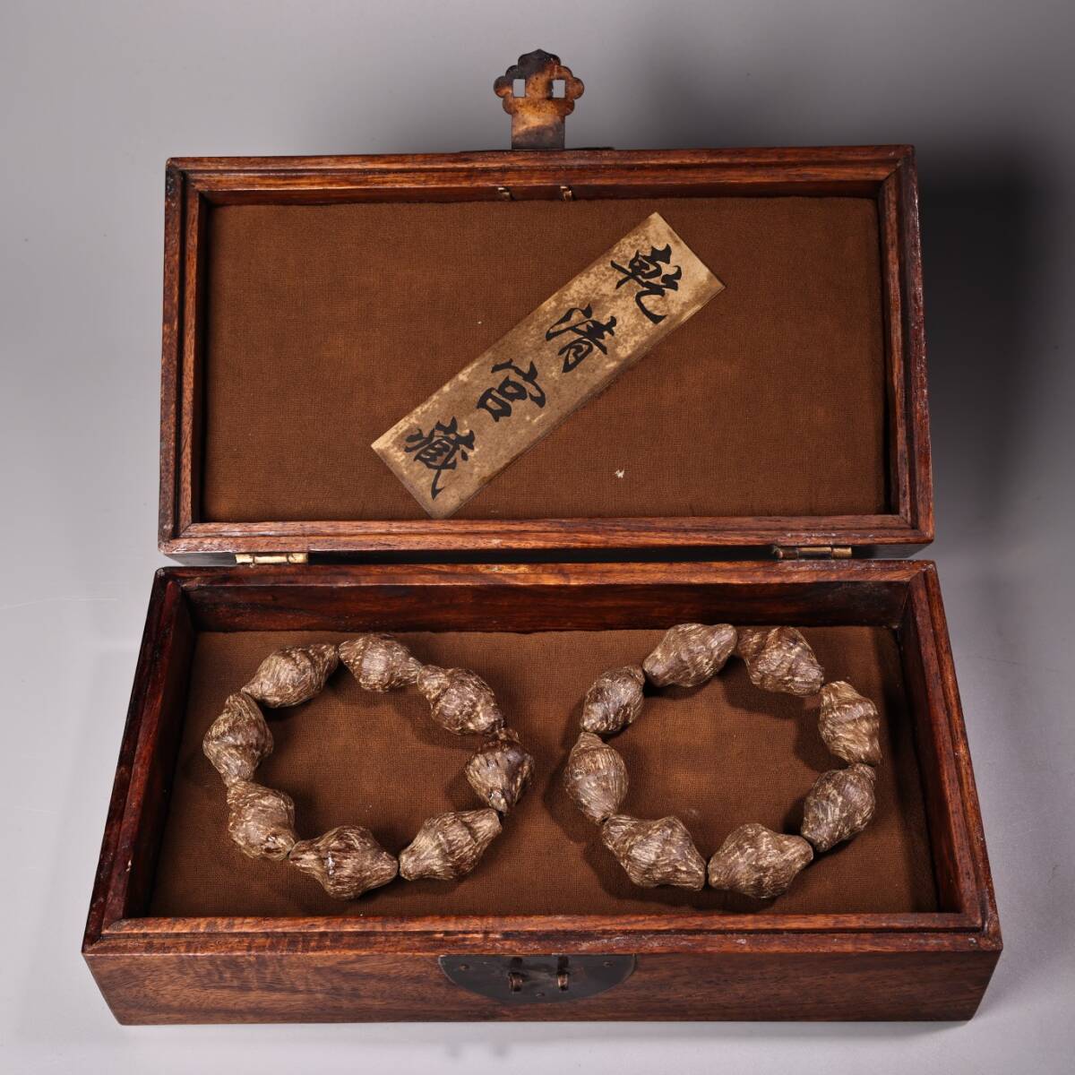 - 蔵友旧蔵出 沈香木製 細密彫 手串手鏈 箱付 置物 古賞物 稀少珍藏品 中国時代美術品