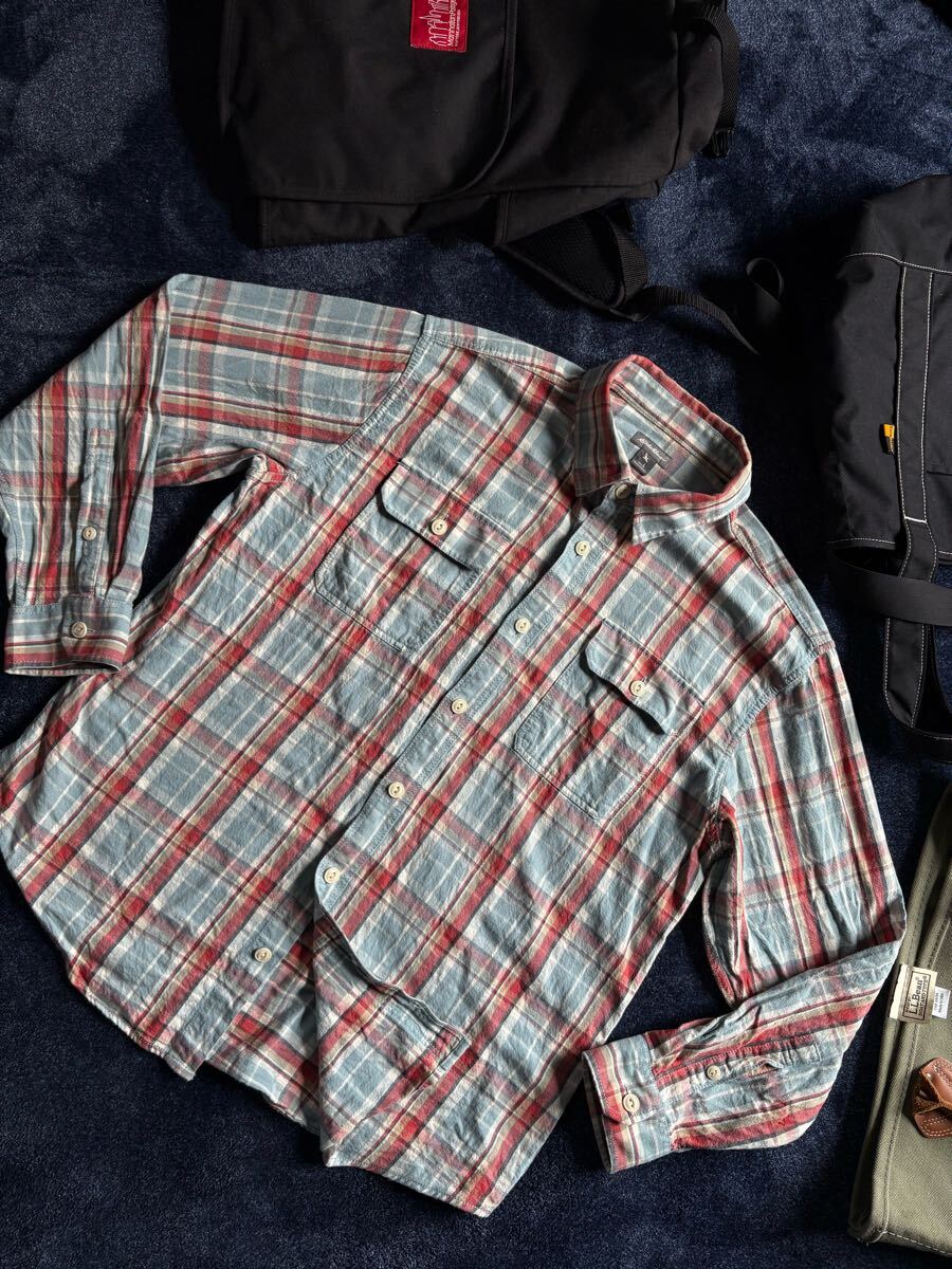 > 超美品 エディバウアー Eddie Bauer 高品質コットン素材 襟スタンダード 猫目ボタン カントリーチェック アウトドア系 長袖シャツ sizeL