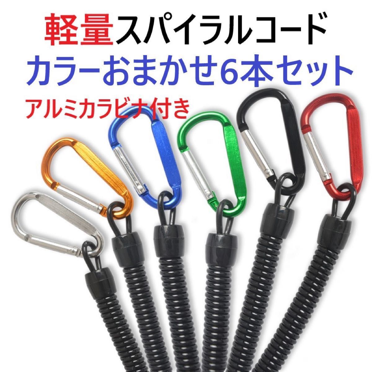- 軽量カールコード 6本セット 最大伸長120cm アルミカラビナ付き スパイラルコード 釣り道具 工具等の落下防止 ストラップ