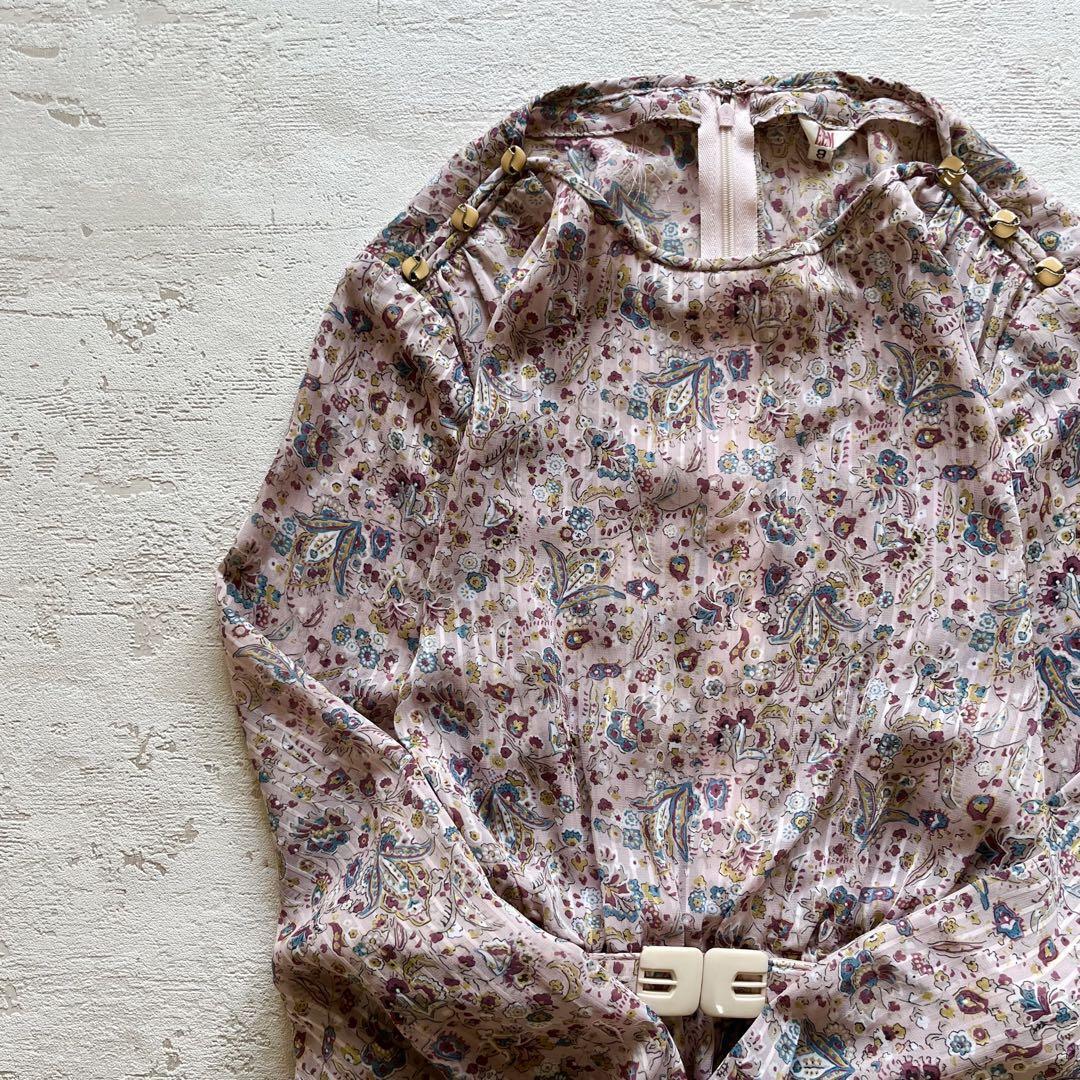 - 昭和レトロパターン柄長袖ロングワンピースベルト透け素材9号M1