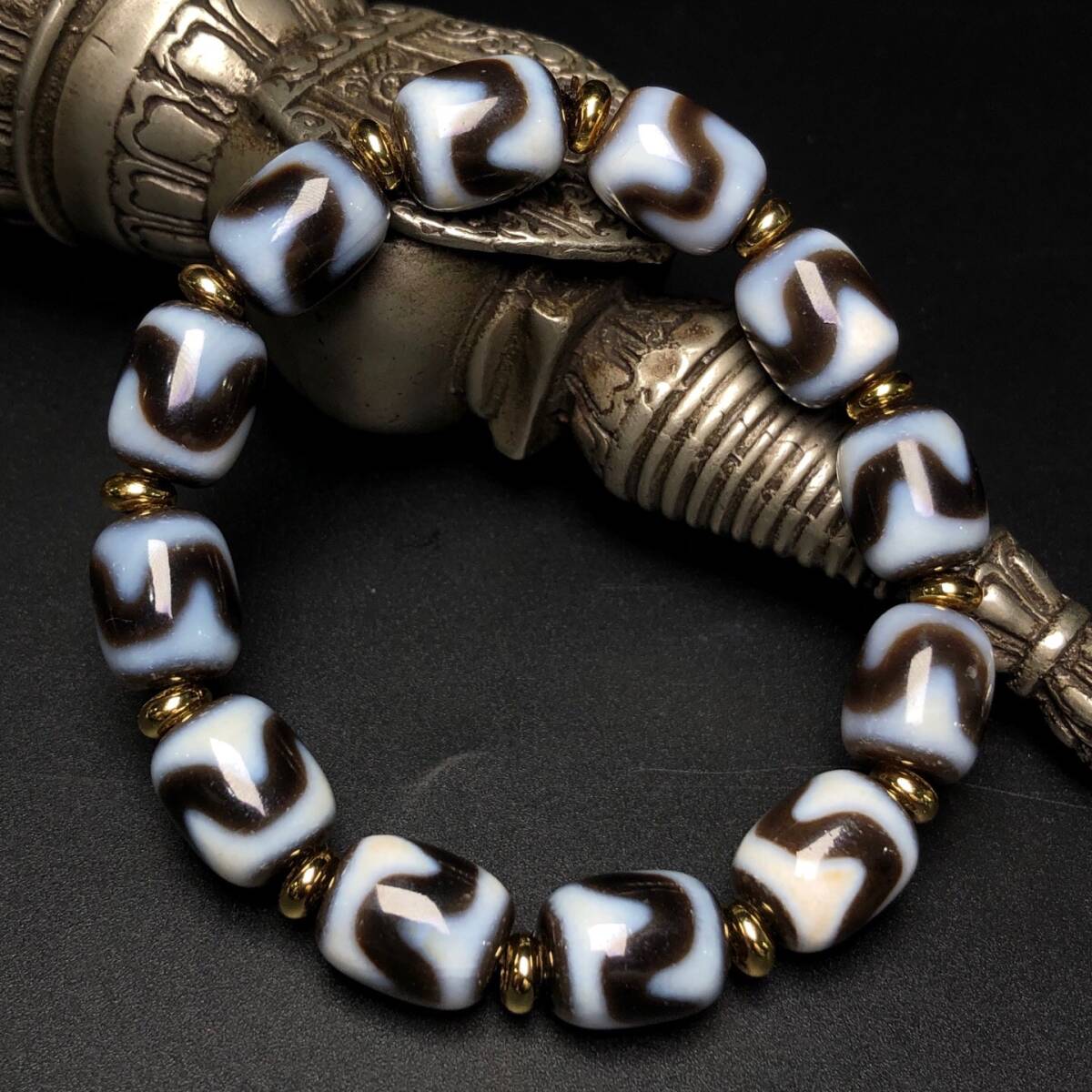 - ▽鴻▽ 瑪瑙製 細密彫 虎牙天珠チェーン 根付 裝身具 古賞物 中国古玩 中国古美術