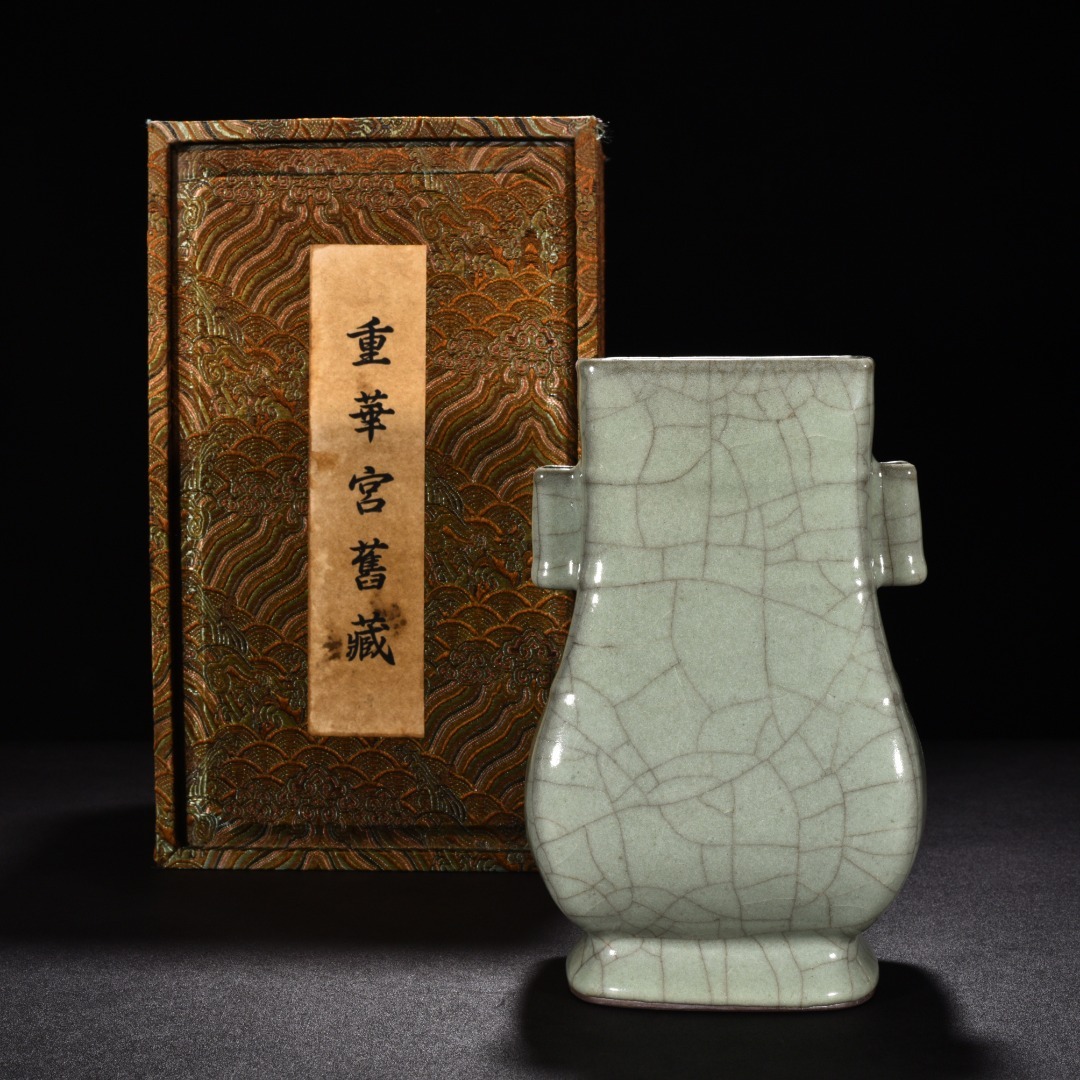 - TA306■中国古玩 唐物 宋時代 哥窯 灰青釉 貫耳瓶 方瓶 時代物 極上品■