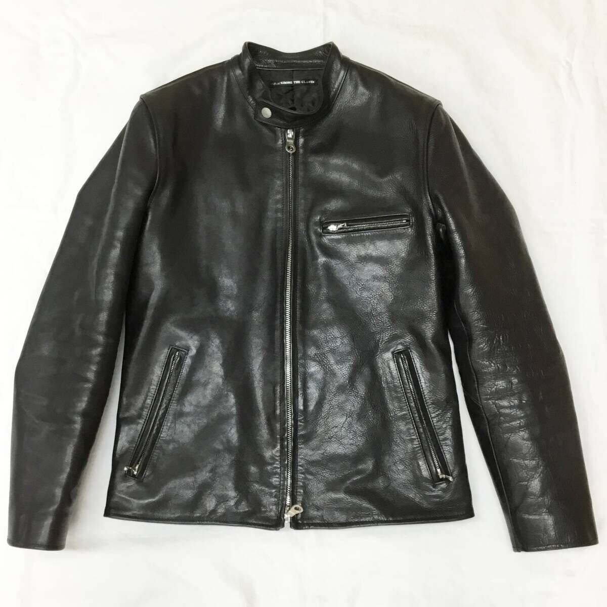 - 中古AB バックボーン 革ジャン BACK BONE シングル ライダース ジャケット BB10FW-LB31 牛革 Sサイズ ブラック 150076