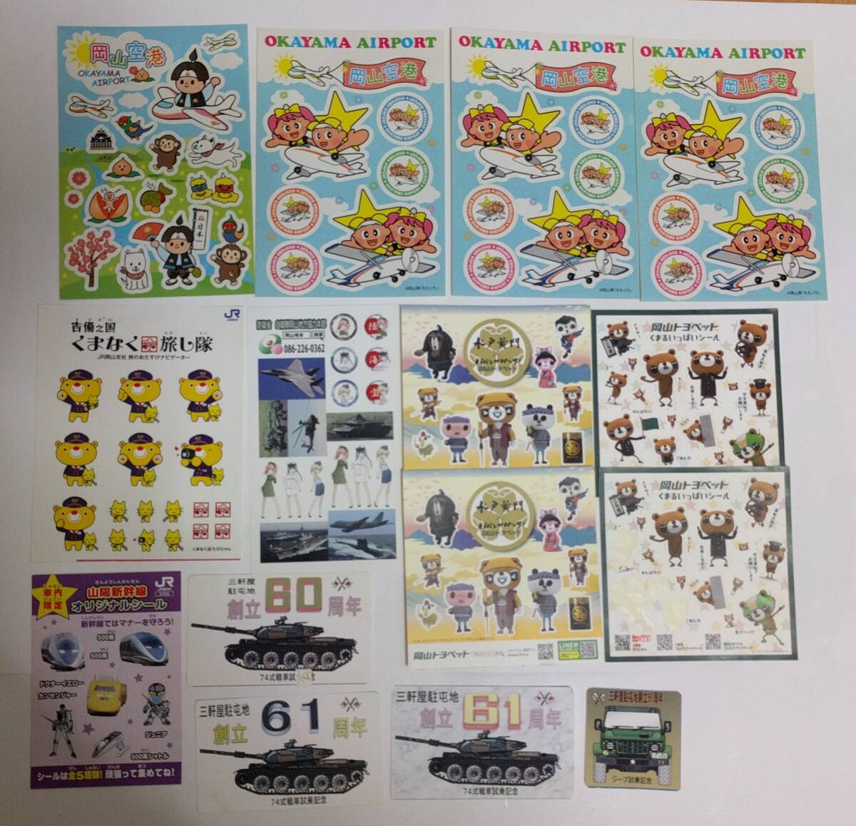 - 岡山県 シール 15点 JR岡山 山陽新幹線 岡山空港 岡山トヨペット 自衛隊 三軒屋駐屯地