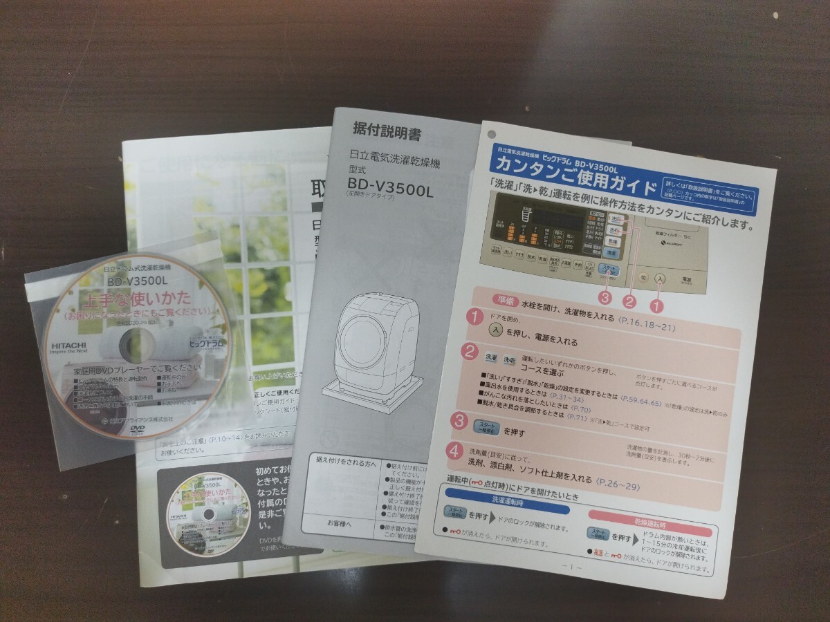 - 日立 電気洗濯乾燥機BDーV3500L 取扱説明書 据付説明書 DVD カンタンご利用ガイド