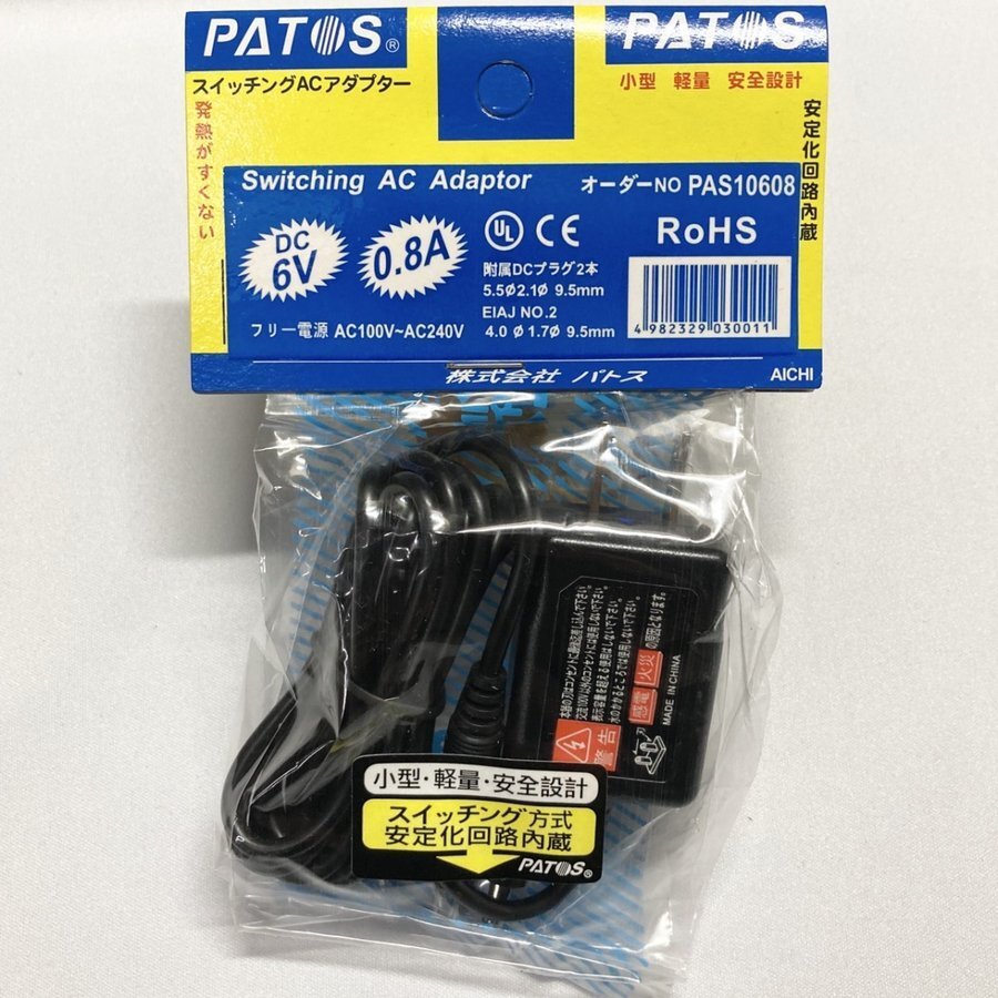 - 【安心の国内メーカー品】パトス 汎用スイッチングACアダプター DC6V0.8A PAS10608 直流安定化出力電源【PSE RoHS対応】返品交換不可