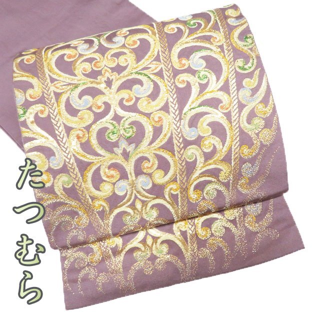 - 特選 袋帯 中古 リサイクル 正絹 フォーマル 仕立て上がり 三通 たつむら 龍村美術織物 透彩唐草文 半色 多色 金 きもの北條 A1190-11
