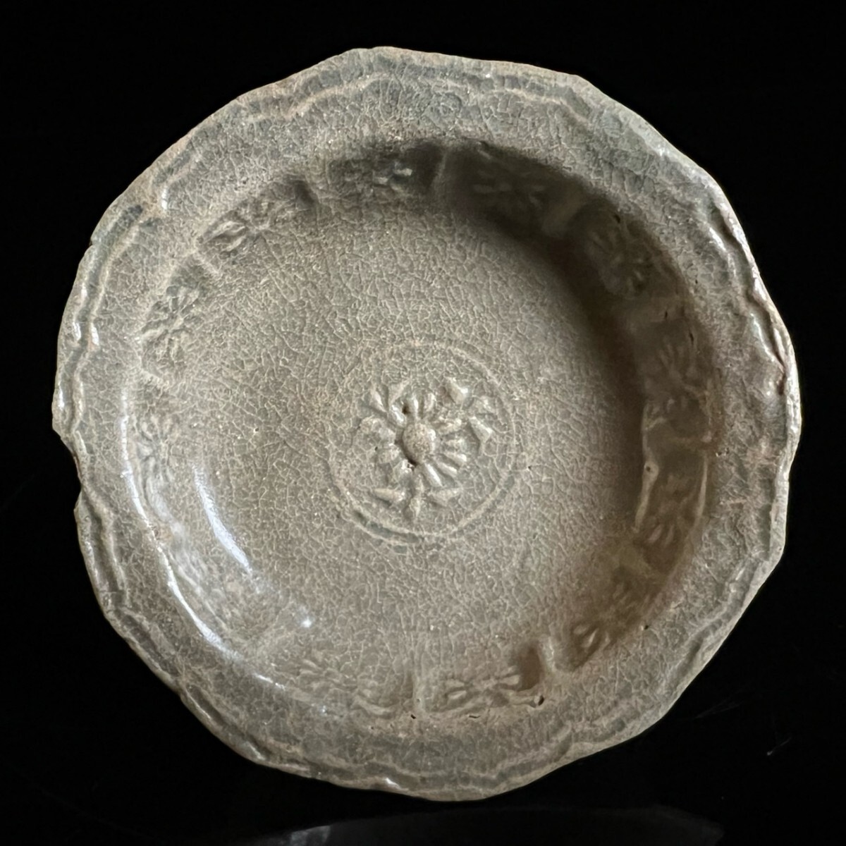 > ◇鸛◇ 朝鮮美術 高麗 時代 青磁 菊花文陽刻皿 10cm 高麗青磁 李朝 韓国 朝鮮古陶 唐物骨董