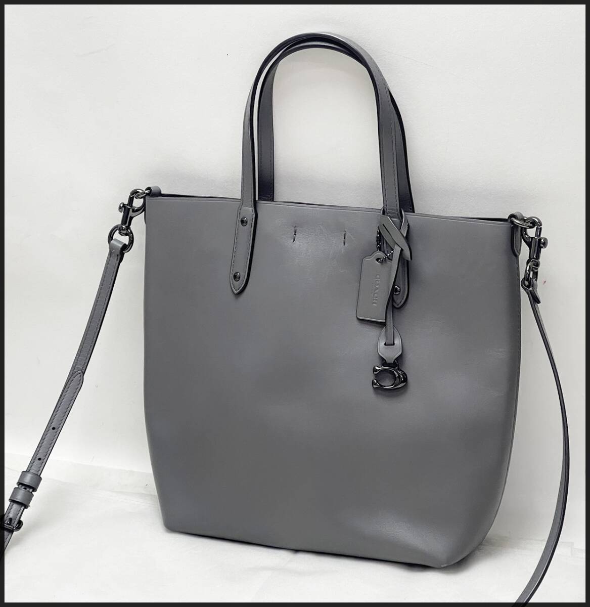 - 中古 コーチ レザー 2Way ショルダーバッグ 78217 ハンドバッグ グレー 領収書可