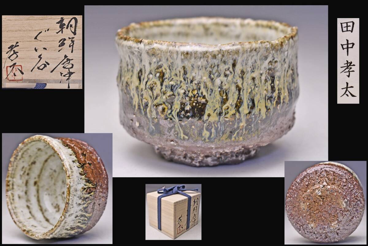> 田中孝太 ★ 朝鮮唐津 ぐい呑 ★ 共箱 共布 栞 ★ 師: 中川自然坊 / 金栄吉 ★ 心地よい重みに景色見事な逸品 ★ 酒器 杯 盃 ★1