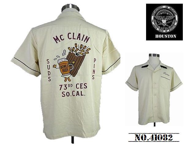 > 【送料無料 30%OFF】HOUSTON ヒューストン 刺繍ボウリングシャツ (ボーリングシャツ) 「BEER」柄 NO.41082 CREAM_Mサイズ