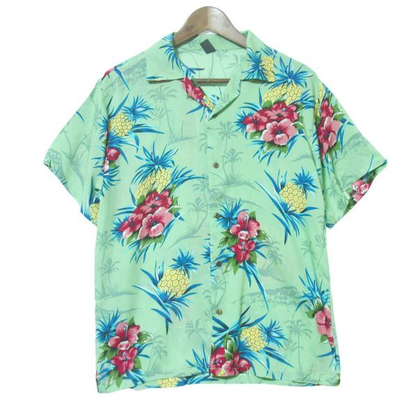 > アロハシャツ 花柄 パイナップル おしゃれ オープンカラー 総柄 ハワイ 南国 リゾート サーフ系 ストリート系 メンズ 半袖★sh0041-lgr-m