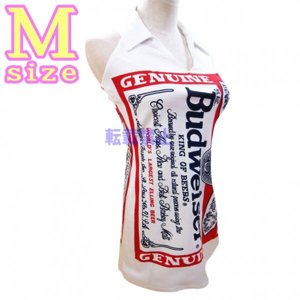 > 【高品質プリント 伸縮可能】バドワイザー バドガール 襟つき ワンピース 白 コスプレ M ホワイト 新品未使用 !送料無料!!