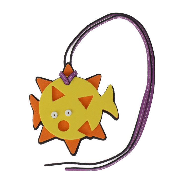 > 超美品 LOEWE ロエベ バッグチャーム 111.10.165 スポンジ × レザー 黄色 オレンジ 黒 紫 ブロ【本物保証】