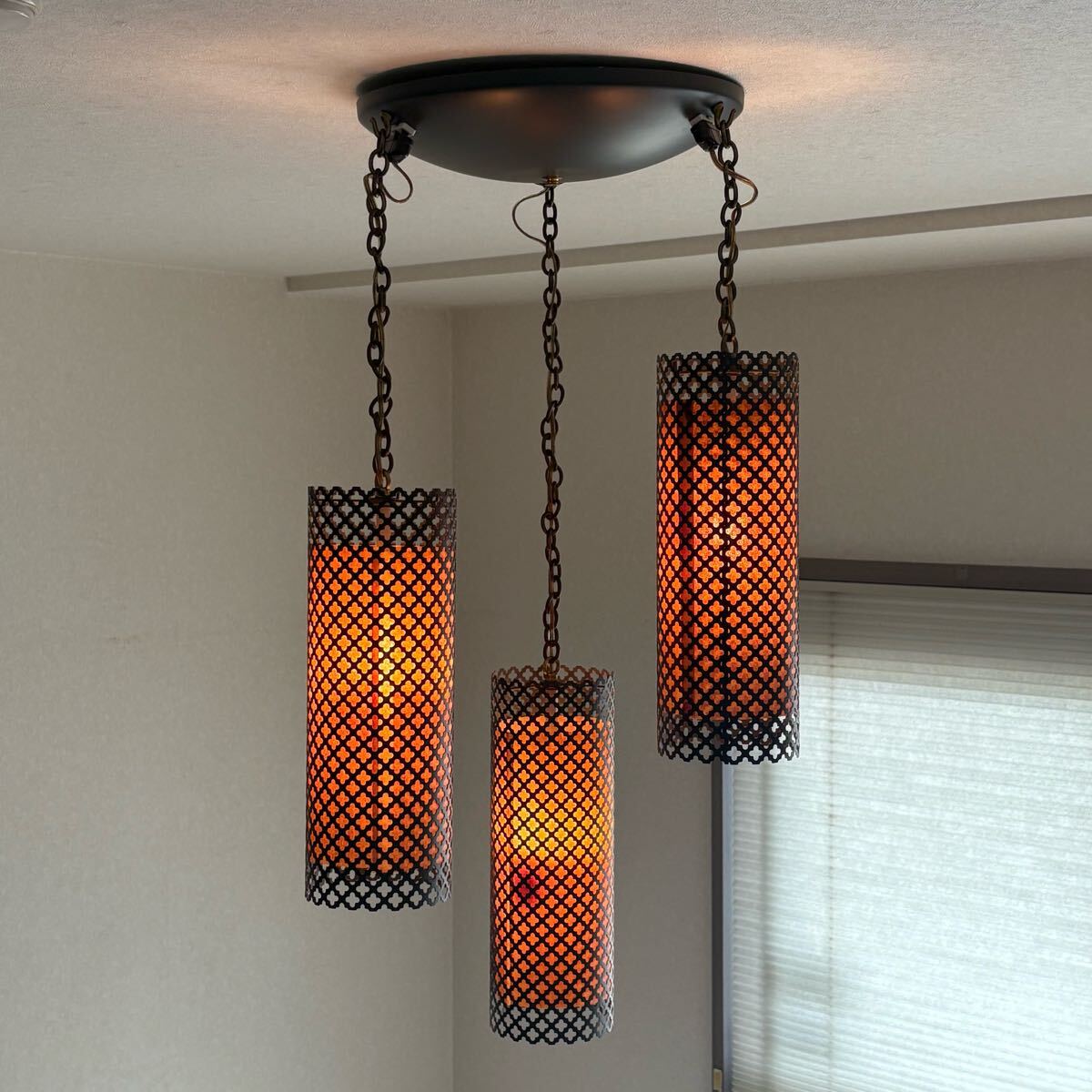 - アメリカ製ビンテージ 3連ハンギングペンダントランプ カスタムペイント
