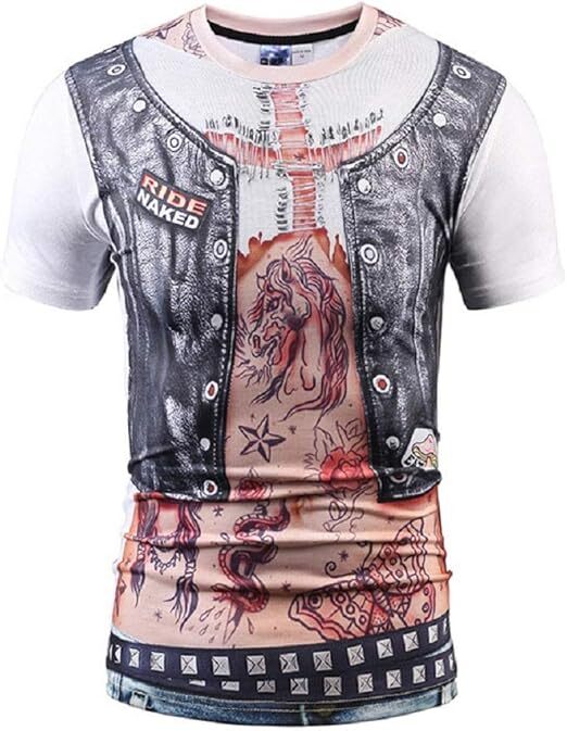 - Tシャツ 革ベスト ドライ 丸首半袖 パロディー ジョーク ライダーシャツ コットン100 長袖uネック tシャツ パンク ライダー (L, 革ベスト)