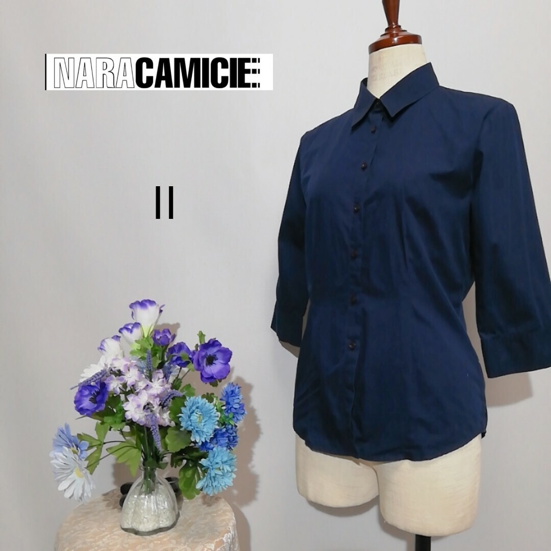 - 極上美品 ナラカミーチェ 七分袖ブラウス 紺色系 Lサイズ