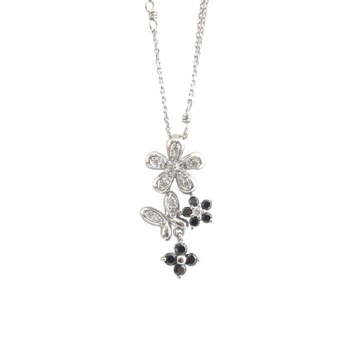 - 【新品仕上げ済】K18WG ブラックダイヤモンド ネックレス BD0.27ct D0.10ct 5.9g 花 蝶モチーフ ホワイトゴールド 18金 ダイヤ ジュエリー