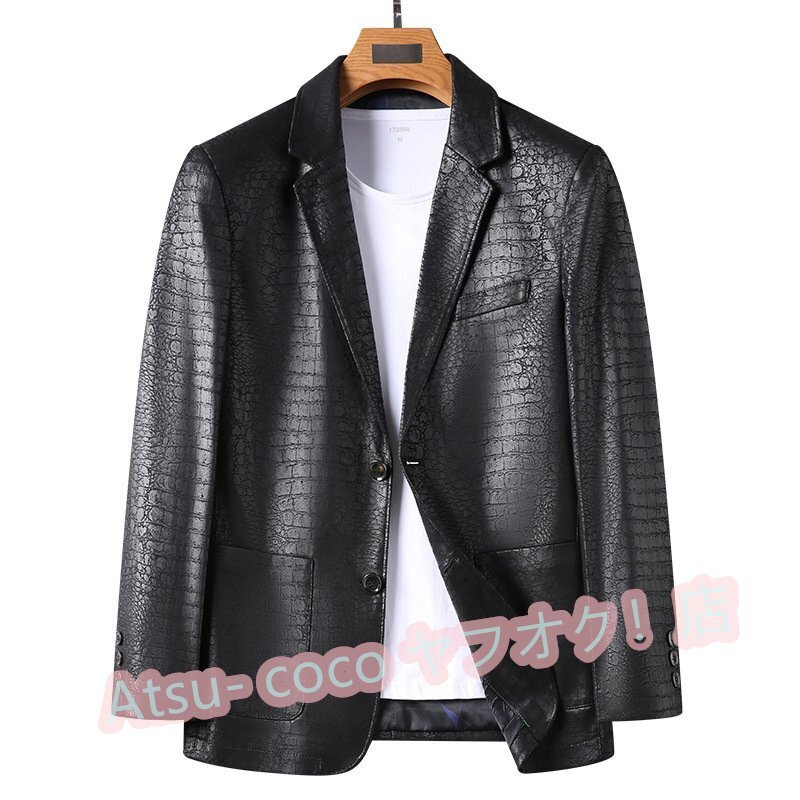 - 新品 羊革 メンズ 独特なワニ柄 イタリア製造 本革ジャケット ブレザー 秋冬 アウター シングル 紳士 通勤 SIZE:XL fz40