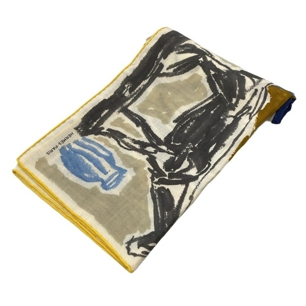 > エルメス HERMES ストール(ショール) カレH 100 カシミヤ、シルク ナチュラル×オークル×マリン Chevaux De La Collection マフラー