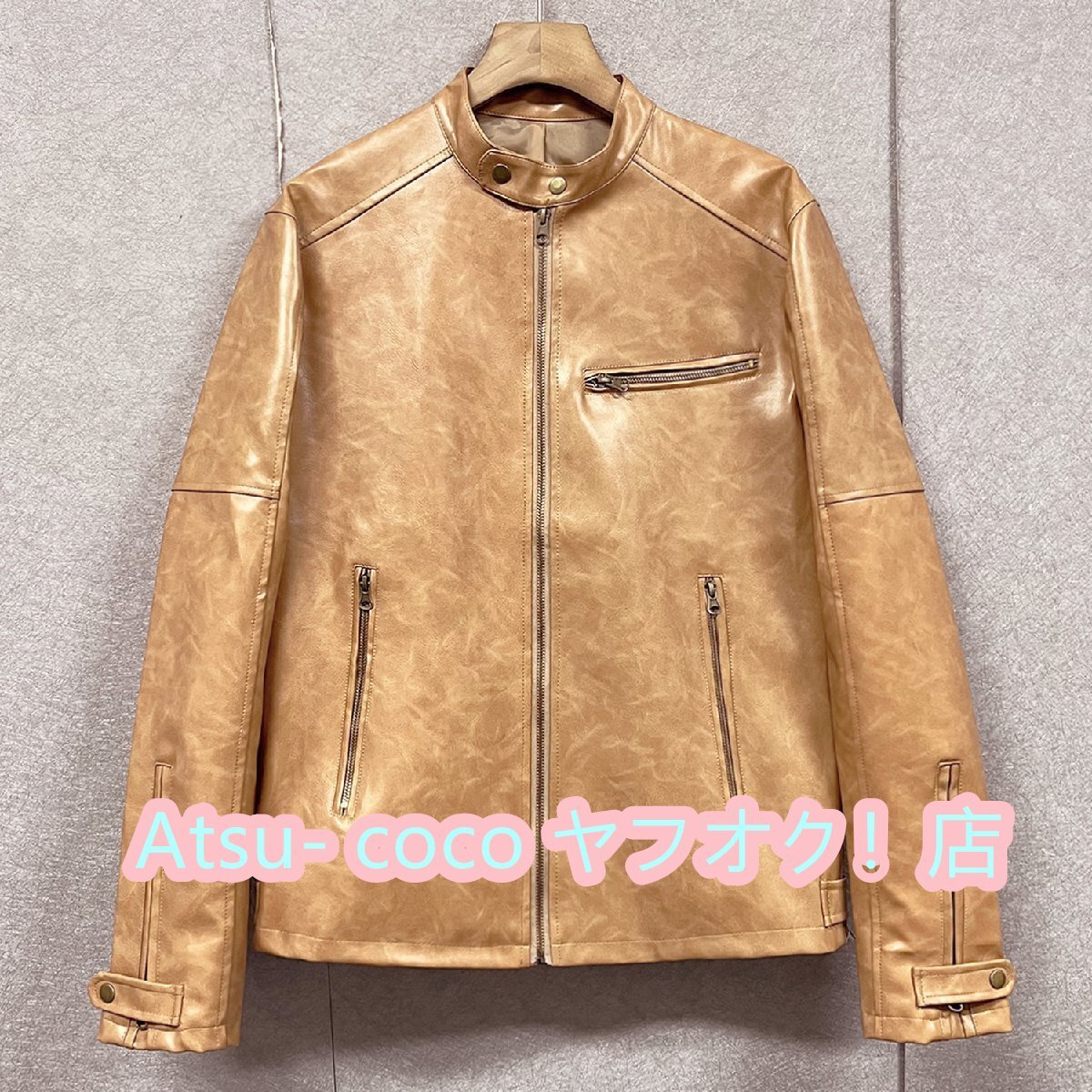 > レザージャケット イタリア製造 個性 上質 撥水 滑らか 無地 コート アウター ライダース オートバイ バイク用 メンズ 街着 SIZE:2XL
