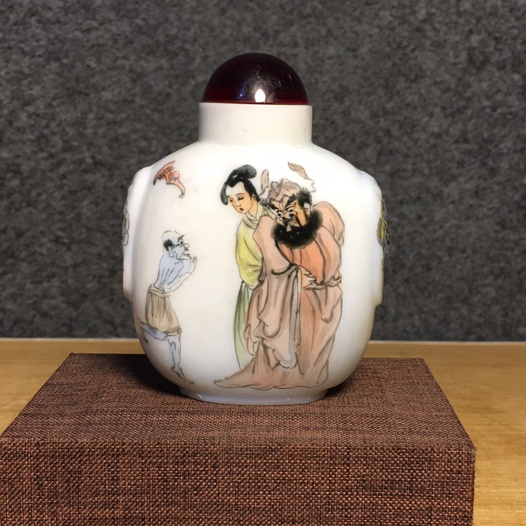 - ▽鴻▽ 琉璃製 細密彫 人物紋 鼻煙壺 根付 裝身具 古賞物 中国古玩 中国古美術