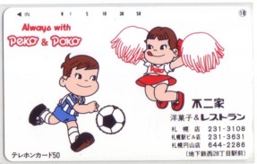 - 【テレカ】 ペコちゃん ポコちゃん 不二家レストラン 札幌店 テレホンカード 10K-FP0034 未使用・Aランク