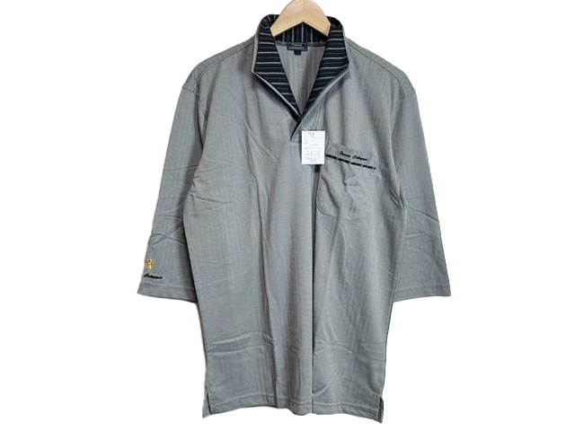 - 41083 グレー Lサイズ FRANCO COLLEZIONI 二重変化衿 七分袖ドレスポロシャツ