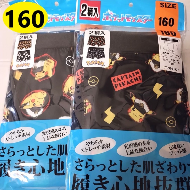 - 160 ★ 4枚 ポケットモンスター ピカチュウ テラパゴス ボクサーブリーフ メンズ 黒 インナー パンツ アンダーウェア 170