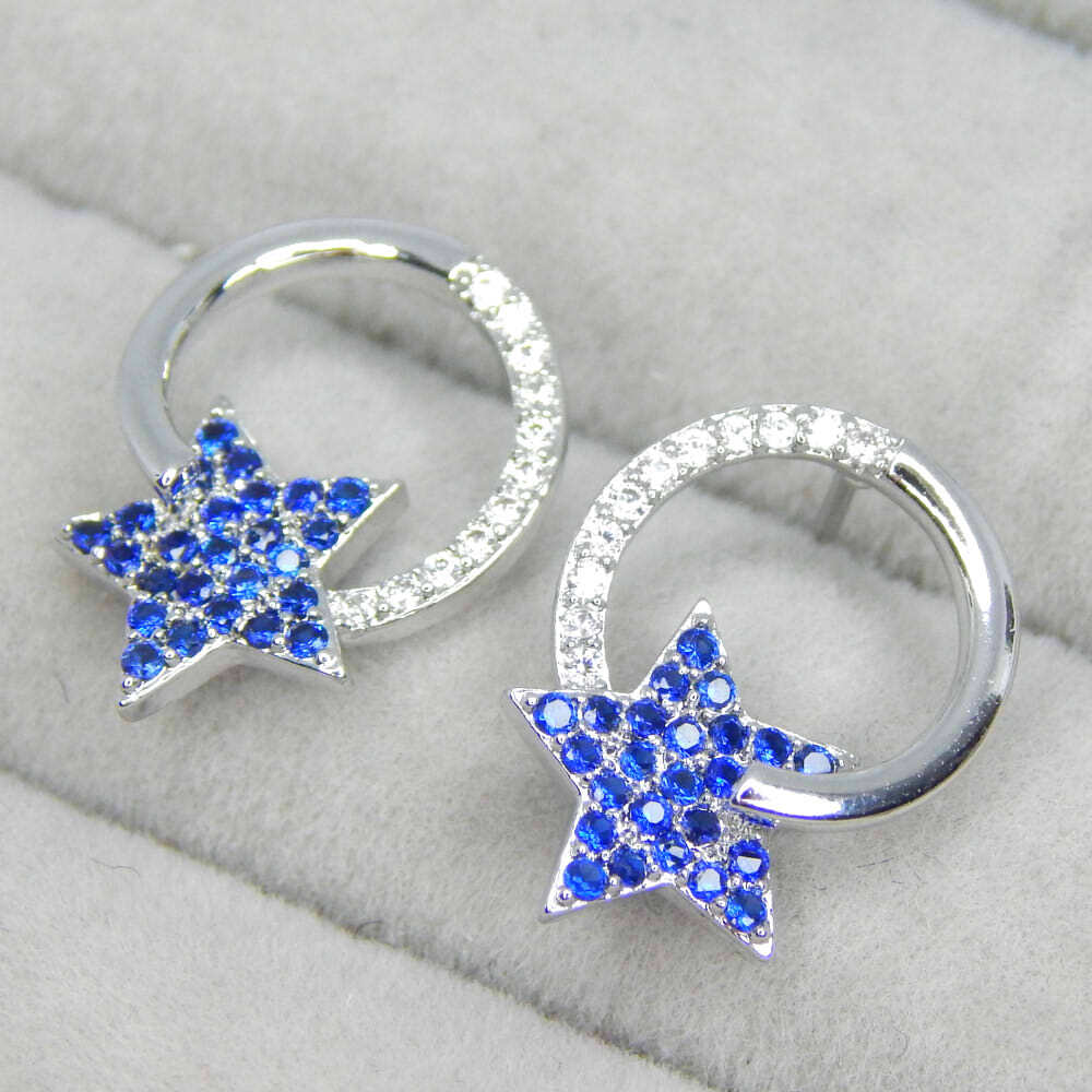 > 残り1点★新品★送料無料 サファイアスターピアス レディース シルバー925 CZダイヤモンド プラチナ仕上 ジルコニア イヤリング化可
