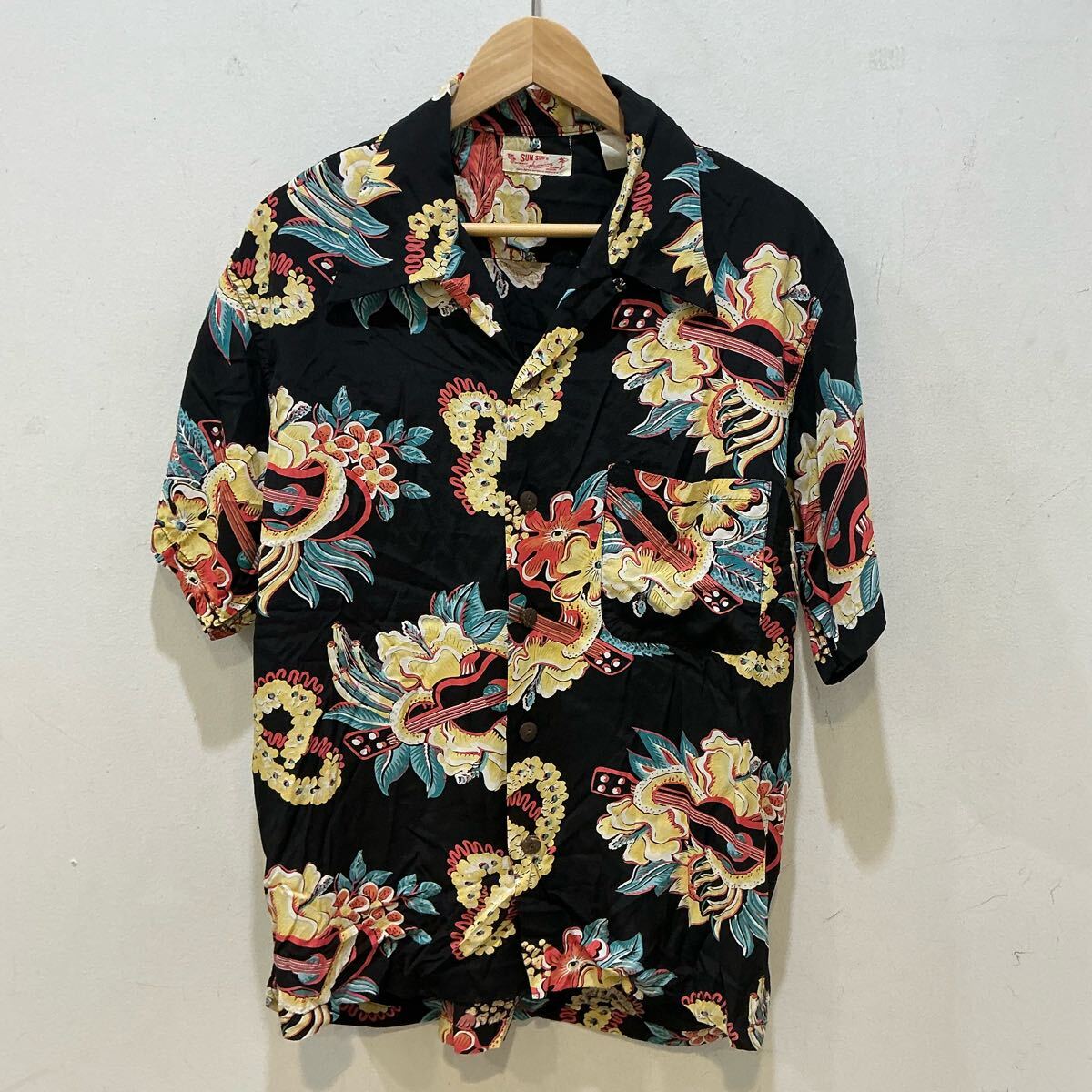> SUNSURF サンサーフ RAYON ALOHA SHIRT アロハシャツ レーヨン 総柄 半袖シャツ ブラック Mサイズ
