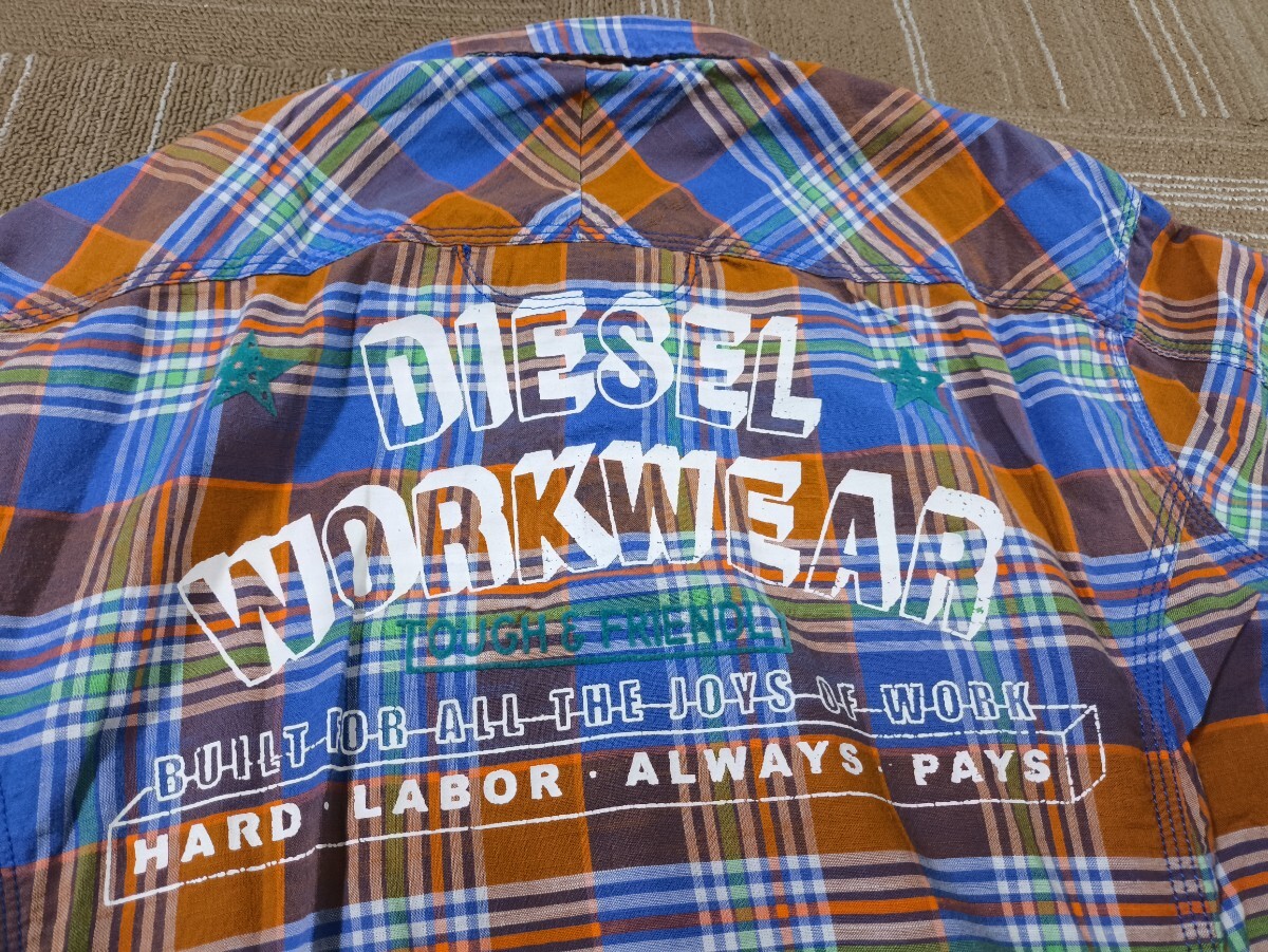 - サイズ:S 美品 DIESEL ディーゼル タータンチェック柄 半袖シャツ オレンジ/ブルー