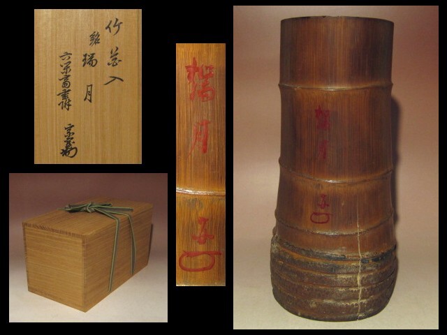 - 裏千家六代 六閑斎 竹花入【瑞月】★裏千家十四代淡々斎極め★a522