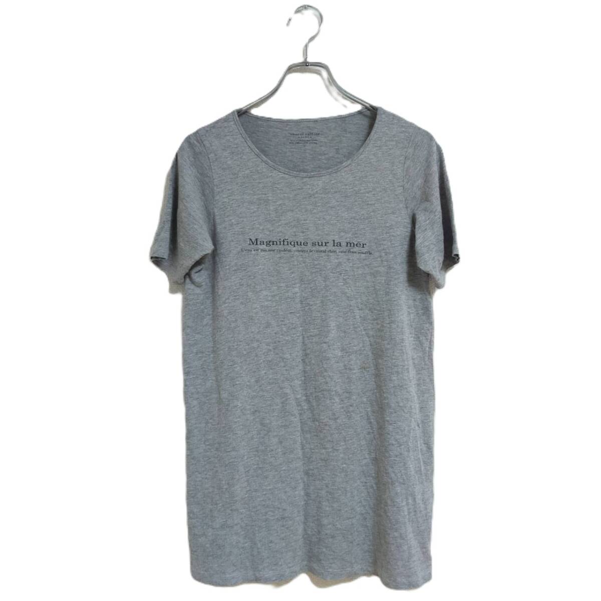 - ショコラフィネローブ 半袖 ロゴTシャツ ロング丈 グレー 綿 F シンプル 夏