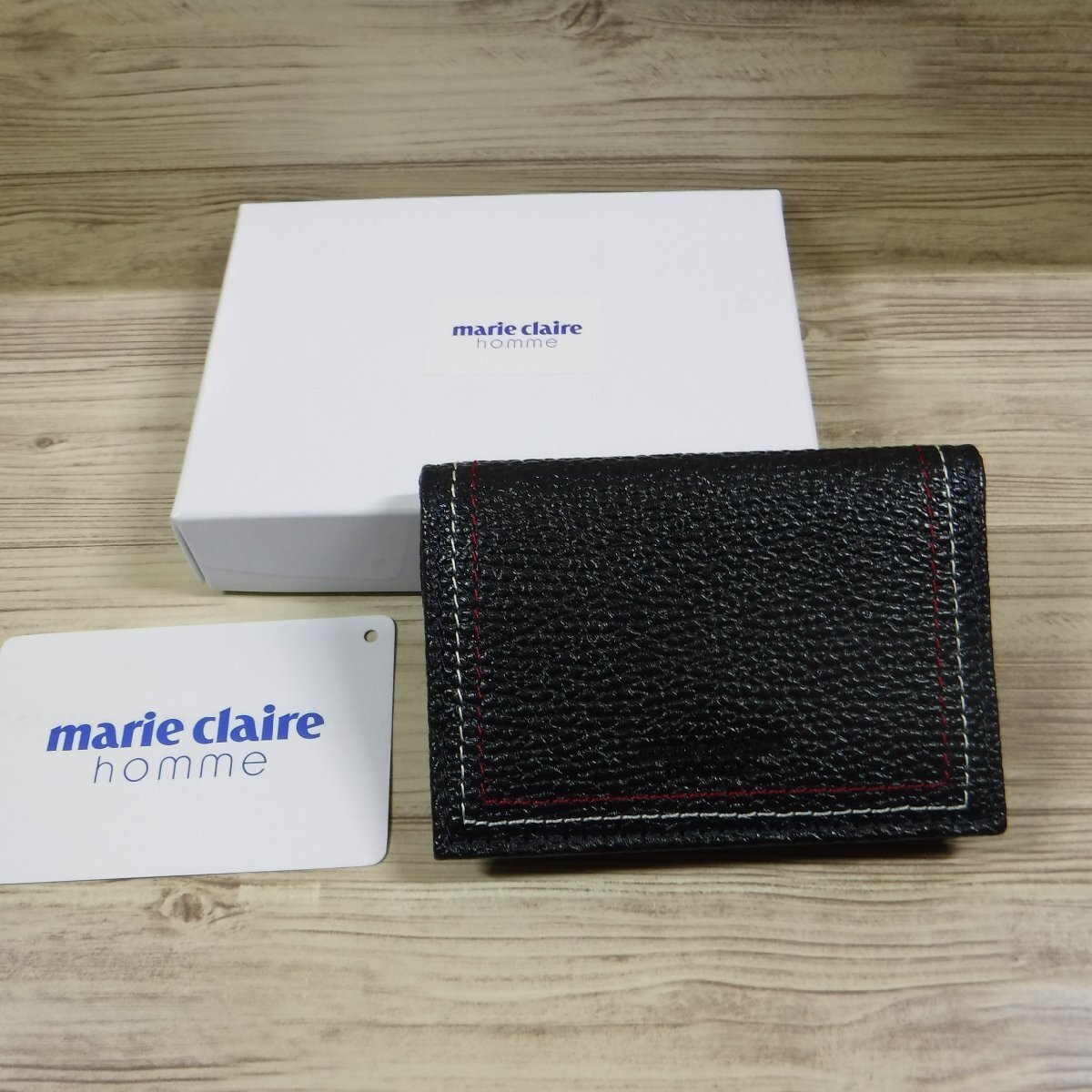 - QQ298 マリクレール オム 新品 黒 山羊革 ボックス型小銭入れ ゴートスキン ミニ財布 カード2枚収納 marie claire ブラック