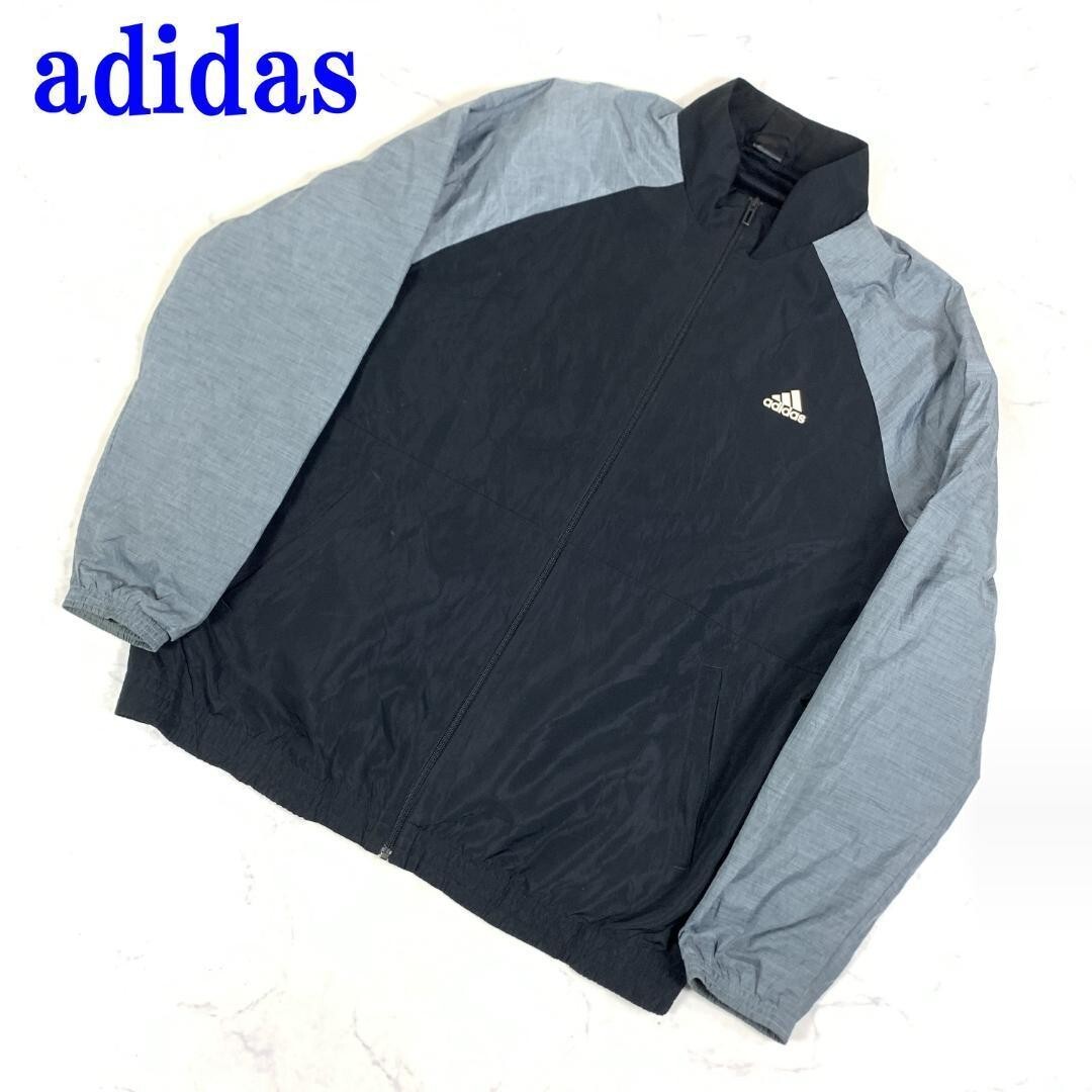 > adidas アディダス ウインドブレーカー 黒 ブラック グレー ジャンパー ブルゾン UK50/52 C2611