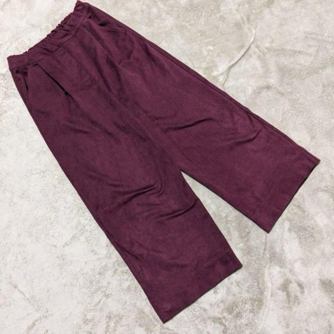 - ナノユニバース ワイドパンツ 36 赤系 ボルドー スエード 無地 ズボン