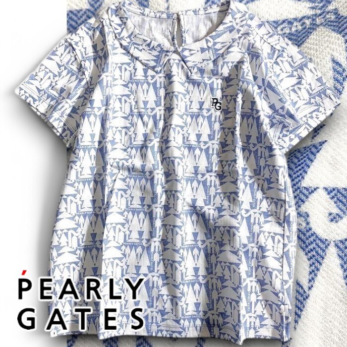 - PEARLY GATES パーリーゲイツ 定価1.9万 ヘリンボーン 衿付き 半袖 プルオーバー ゴルフウェア レディース 2160518 110 1 ▲022▼50507w10