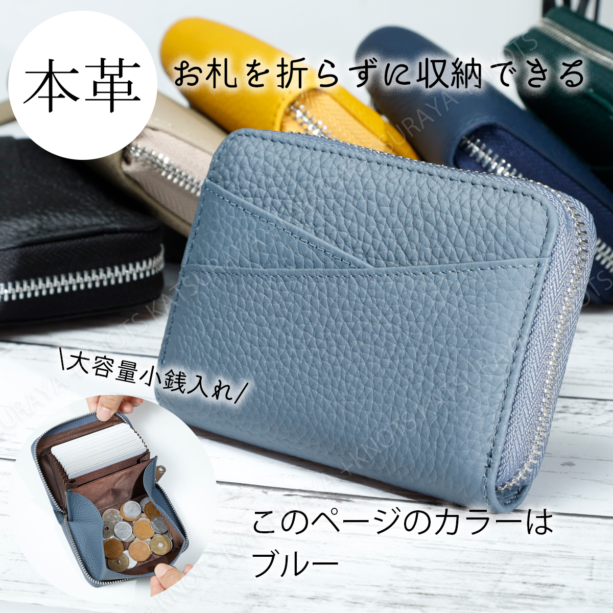 - 本革 お札折らない ミニ財布★ブルー★レデース メンズ 大容量 小銭入 カードケース 小さい コンパクト 牛革 レザー 折れないa379