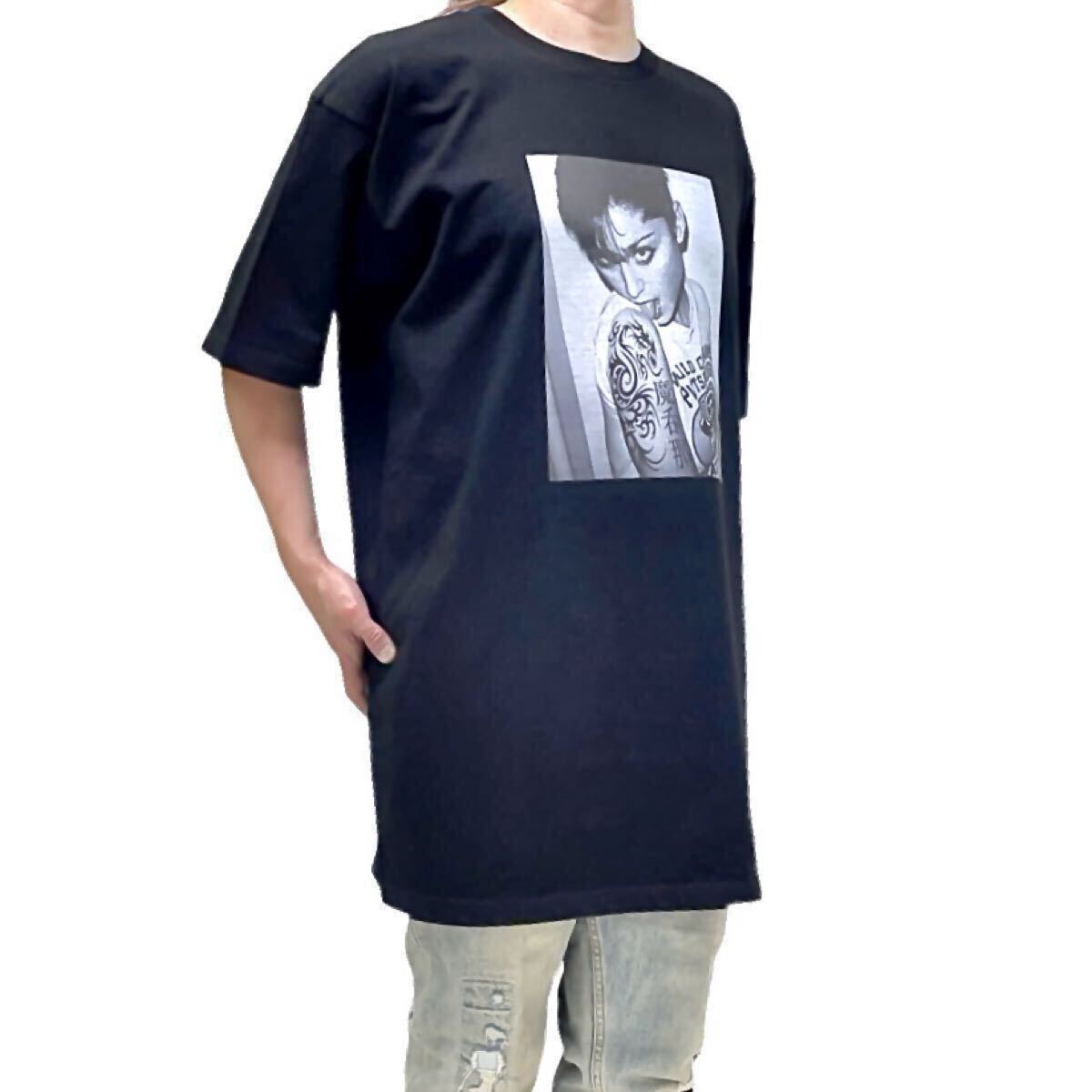 > 新品 マドンナ ベロ出し 魔呑那 当て字 漢字 アジアン トライバル 龍 ドラゴンタトゥー コラージュ ビッグ Tシャツ オーバーサイズ 4XL(5L)