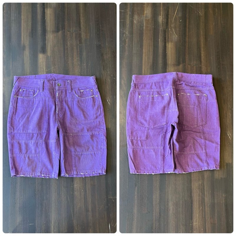 > P メンズ パンツ H&M デニム ジーパン ショート ショーツ ハーフ パープル パッチワーク 古着 FF447 / W34 全国一律レターパック配送
