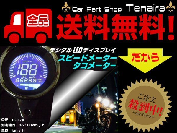 > バイク 汎用 12v デジタル LED ディスプレイ タコメーター スピードメーター 走行距離 燃料ゲージ デジタルメーター オートバイ 送料無料 4