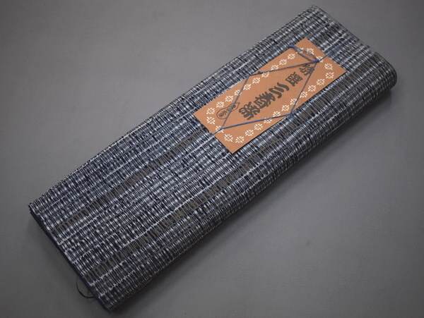 - A01-1【凛々】即決 新古品 本染 ゆかた反物 灰紺 横段 未仕立て品