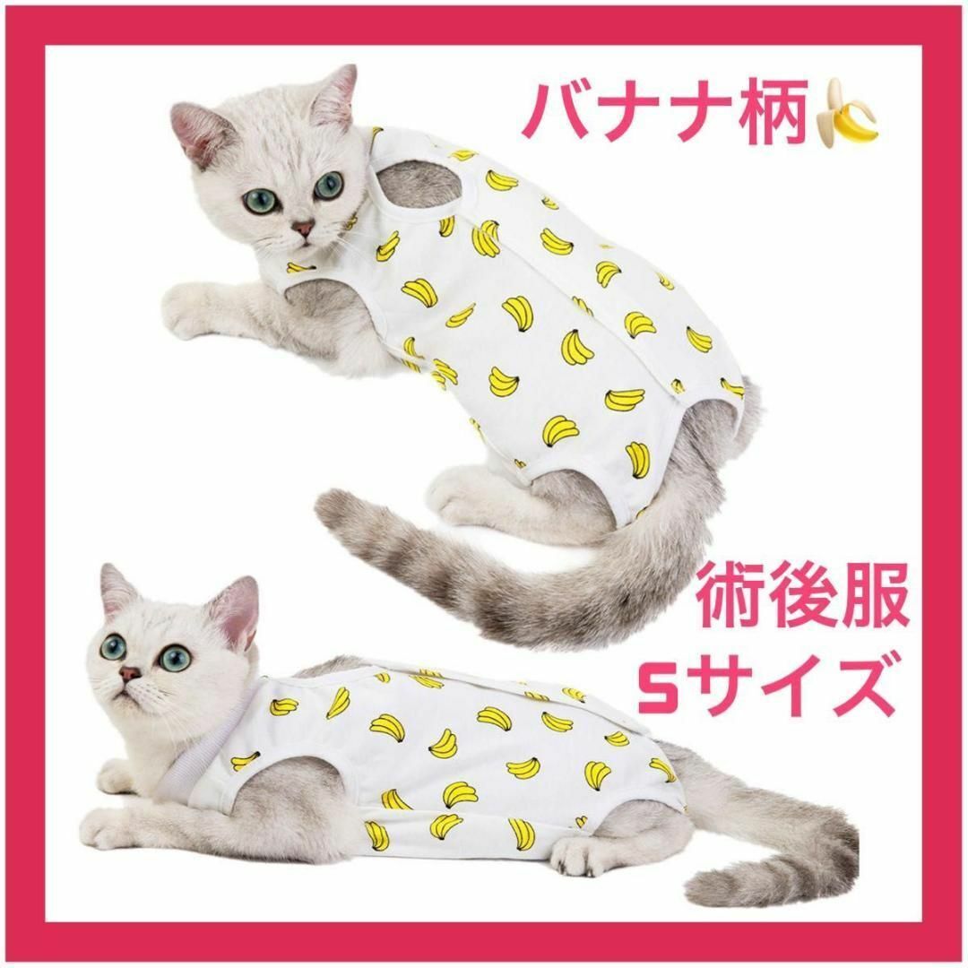 - 【ねこ用】【Sサイズ】術後服 保護服 バナナ柄 引っ掻き防止 マジックテープ
