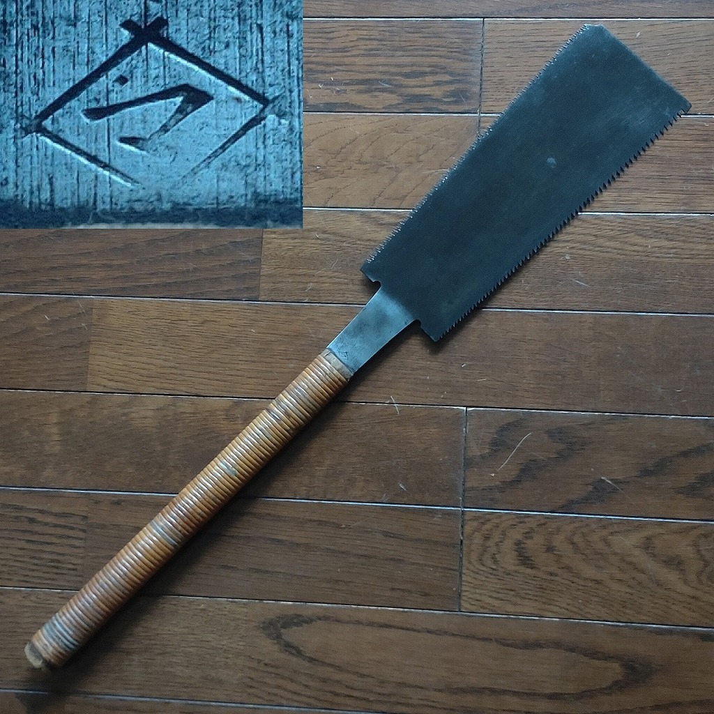 - 両刃鋸 ◇マ 在銘 刃渡り約245㎜ のこぎり ノコギリ 大工道具 工具 日本製 欠けあり【4076】