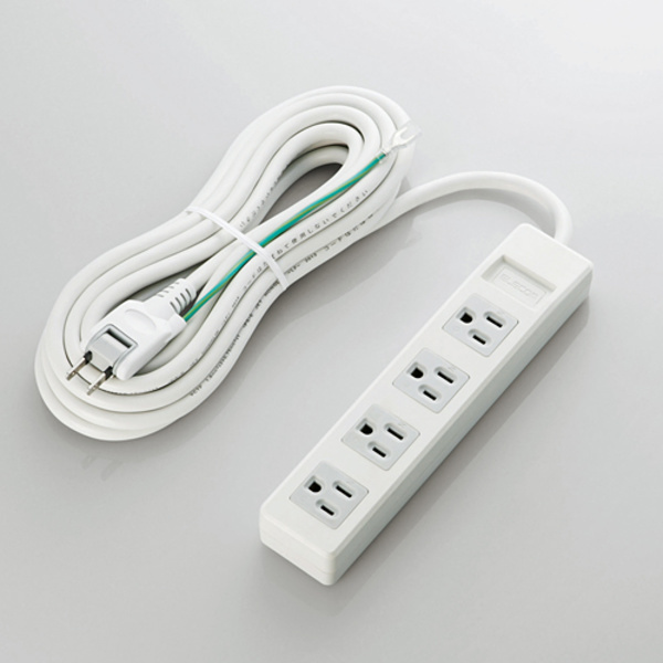 - 3ピン対応タップ 5.0m 4個口タイプ 3ピンプラグが採用されているOA機器をアダプタなしで接続することができる: T-T01-3450WH/RS
