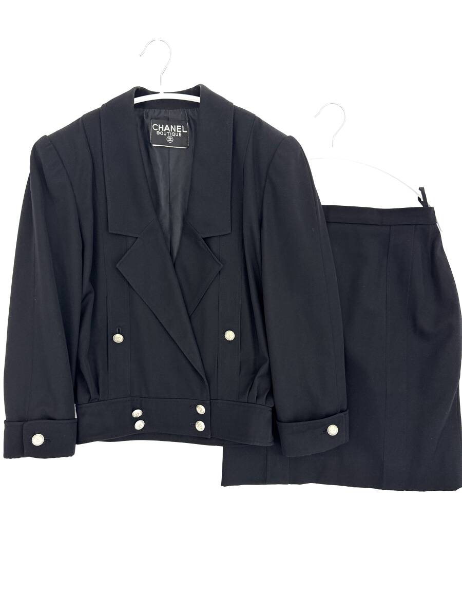 > 7E1810【本物保証】シャネル ジャケット スカート ダブル ココマーク ボタン シルバー セットアップ スーツ ブラック vintage CHANEL