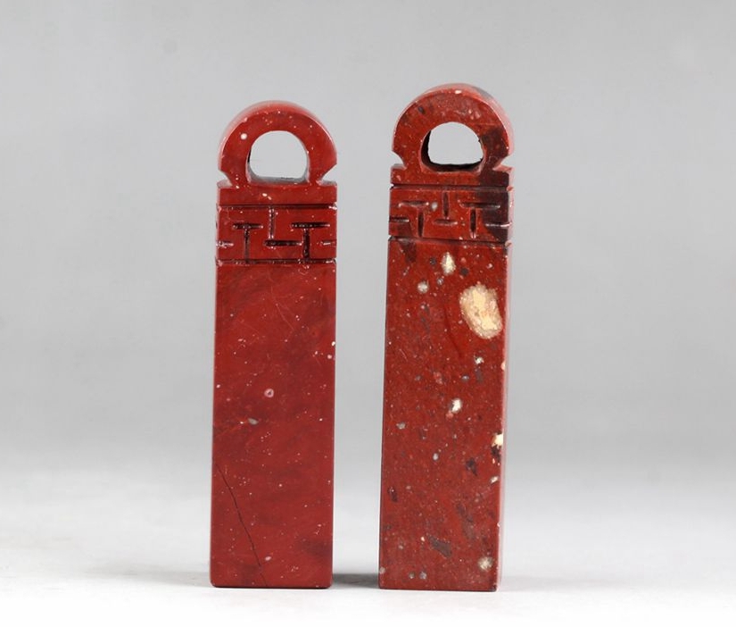 - 中国古美術 鷄血石篆刻 印章 印材 2點 書道具・珍品旧蔵・古賞物・時代物