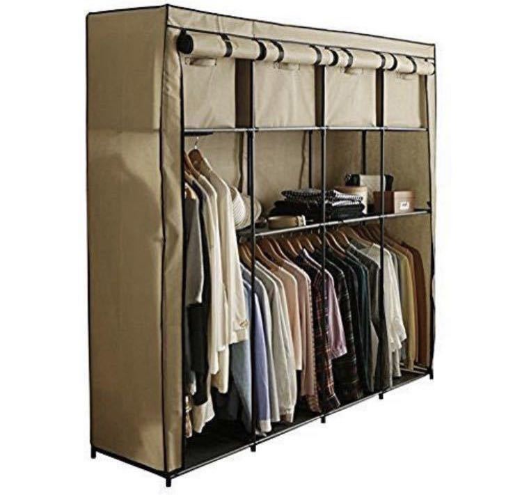 - ハンガーラック ワードローブ 収納ラック 収納棚 クローゼット 収納家具 ベージュ